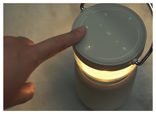天面のボタンに触れるだけで電源がONになり、縁をなぞるように指を滑らせるだけで、音量や光量を自在に調整できます。シンプルなインターフェースで、どなたでも直感的に操作が可能です。