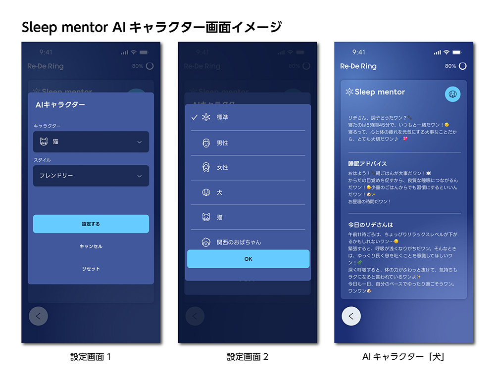 - ・パーソナライズ:毎朝の睡眠スコアやアドバイスを、より親しみやすく、モチベーションが上がる形で受け取れます。